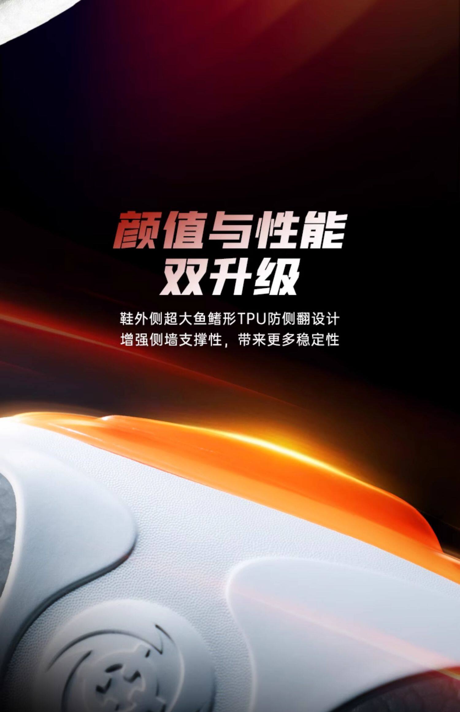 - The shoe's outer side features an oversized fin-shaped TPU anti-roll design, enhancing the sidewall's support and bringing more stability.