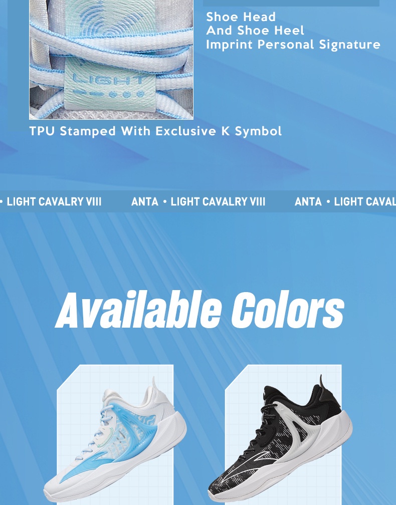 Anta Klay Thompson Light Cavalry 8 is a Klay Thompson Kt8 branch product launched by Anta, focusing on field combat. There are many iconic design languages of KT series basketball shoes.